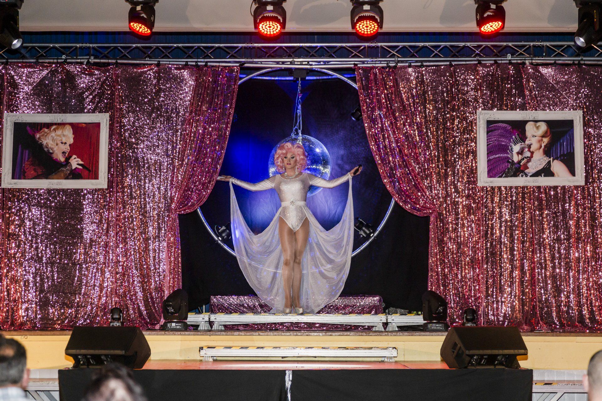 Ich nehme Sie mit in mein Traumland der Travestie, eine Illusion mit perfektem Make up, extravaganten Kleidern aus Seide, Chiffon, Pailletten und Federn.