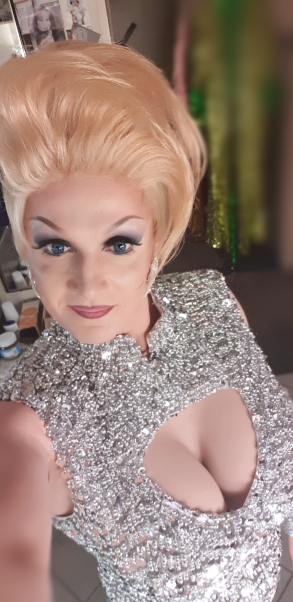 Ich nehme Sie mit in mein Traumland der Travestie, eine Illusion mit perfektem Make up, extravaganten Kleidern aus Seide, Chiffon, Pailletten und Federn.